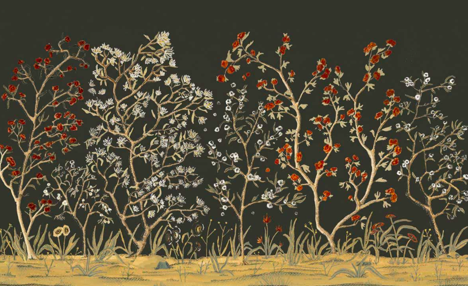 La luz del amanecer parece posarse en frágiles flores en este sofisticado diseño. Floresta quiere iluminar cualquier estancia para abrir una ventana a la naturaleza y la tranquilidad.