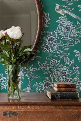 Dale carácter a tus espacios con este papel pintado JARDIN, es un diseño estilo oriental, en tonos azules, blancos, verdosos y un toque de amarillo. Es resistente y fácil de limpiar, asegurando un aspecto impecable con el mínimo esfuerzo.