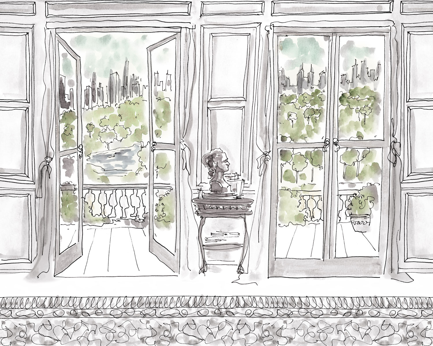 Dale vida a tus espacios con el papel mural PANORAMICA NUEVA YORK VERDE, un croquis a mano alzada desde la ventana de un departamento en Nueva York que mira al Central Park , en trazos blancos, verdes y negros Un diseño que imprime carácter y arte a a cualquier espacio, es resistente y fácil de limpiar, asegurando un aspecto impecable con el mínimo esfuerzo.